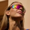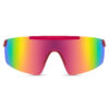 Ervaar stijlvolle bescherming tegen de zon met onze roze sportzonnebril met semi randloos montuur en multicolor spiegelglazen. Deze zonnebril combineert stijl met praktische functionaliteit. De spiegelglazen maken de bril helemaal af terwijl ze tegelijkertijd schittering verminderen en een helder zicht bevorderen, zelfs bij fel zonlicht. Deze zonnebril is ontworpen voor comfort en dat merk je aan alles. Het lichtgewicht montuur zorgt ervoor dat je hem moeiteloos kunt dragen, terwijl de roze matte pootjes een stevige pasvorm bieden, ongeacht de vorm van je gezicht. Hierdoor hoef je je geen zorgen te maken dat de bril afglijdt. Of je nu je stijl een boost wilt geven, je ogen wilt beschermen, of gewoon een vleugje zelfvertrouwen aan je look wilt toevoegen, onze roze sportzonnebril met semi randloos montuur en multicolor spiegelglazen is de perfecte keuze.